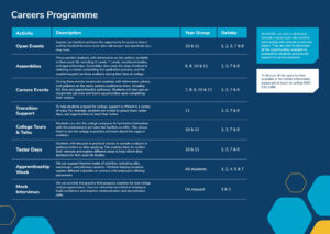 We deliver tailored activities that support careers education and meet Gatsby Benchmarks, all underpinned by our values of Ambition, Care, Commitment, Equity, Integrity, and Partnership.
